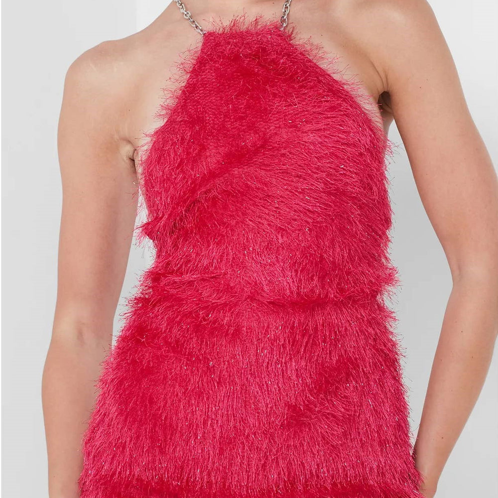Regular price $99.00Turn up the glam in the Mia Chain Tie Halter Mini Dress! This flirty mini dress features a halter neck design adorned with fluffy fringe detailing that adds playful texture and movement. The dress is completed with a chic chain tie detail and a rear tie fastening, making it a standout piece for any night out.